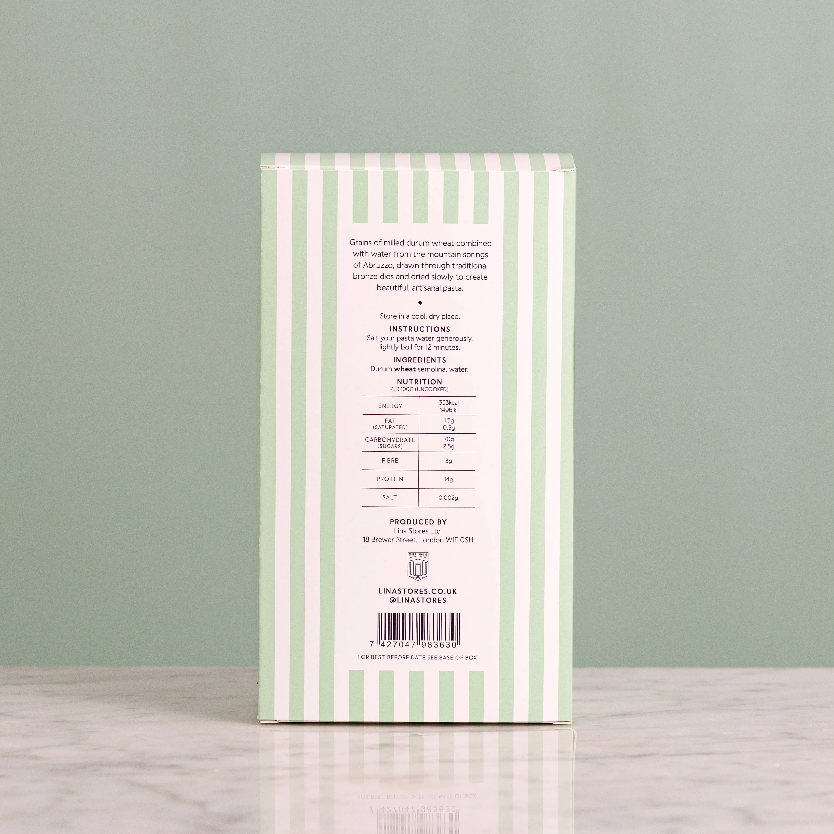 Made from grains of milled durum wheat combined with water from the mountain springs of Abruzzo, our Lina Stores dried pasta are drawn through traditional bronze dies and dried slowly to create beautiful, artisanal pasta.